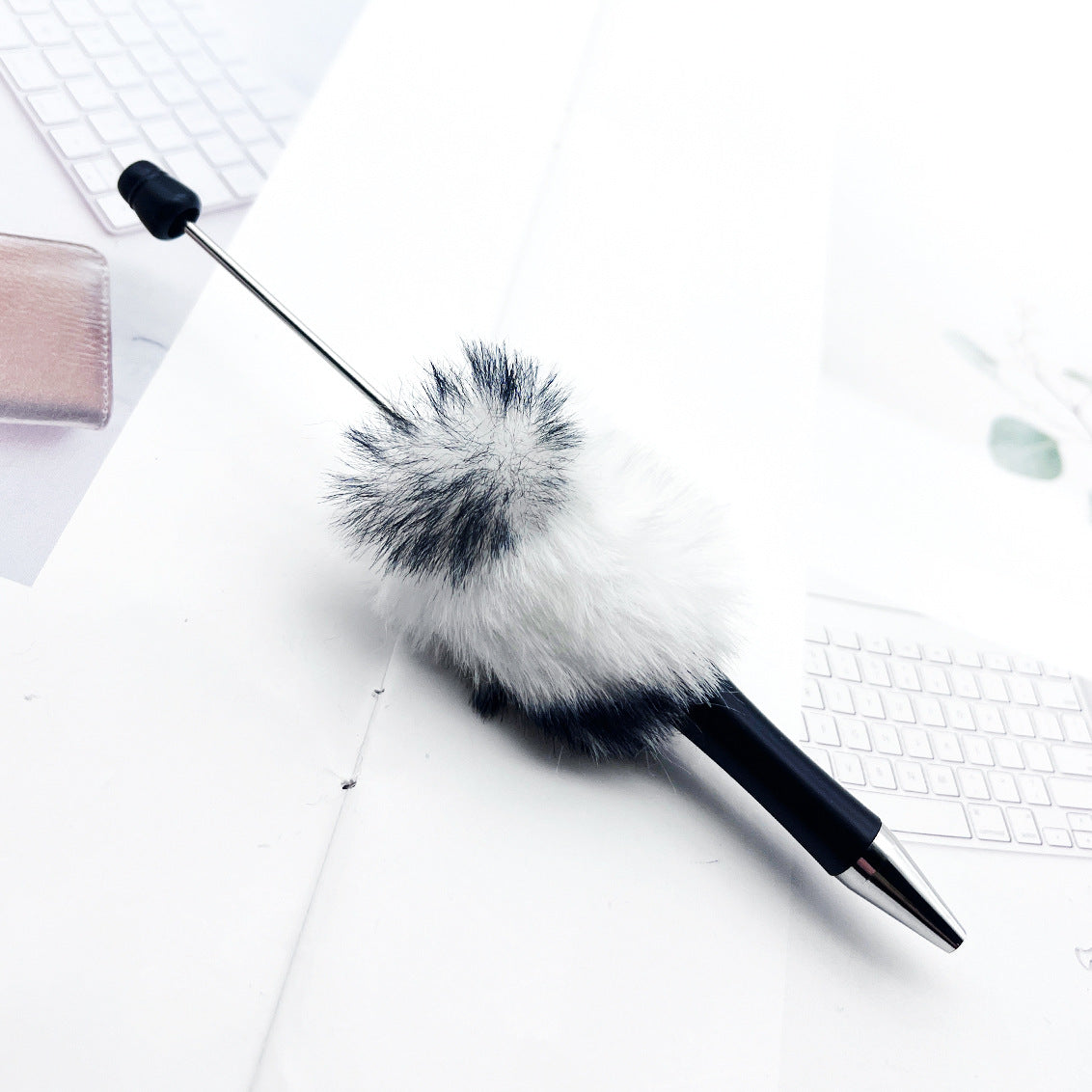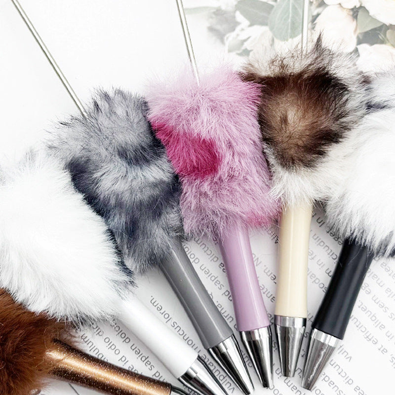 Leopard-print Plush Beaded Pen